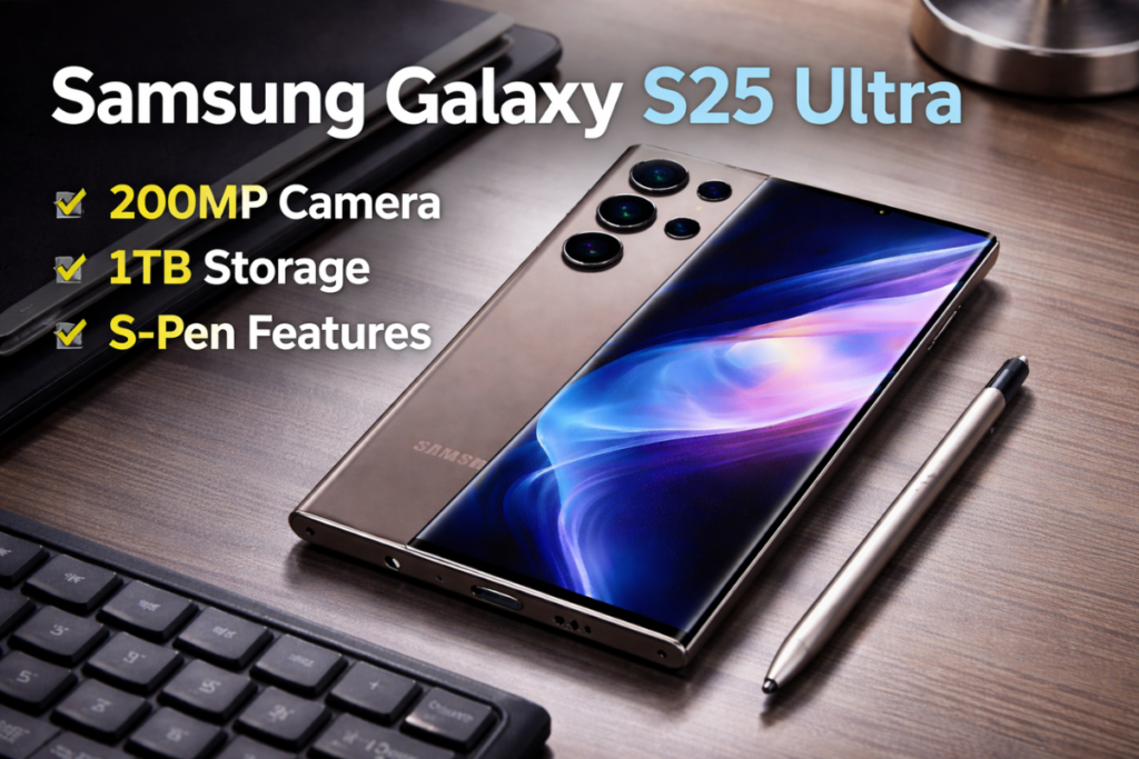 या लेखात आपण Samsung Galaxy S25 Ultra details, फीचर्स, कॅमेरा, परफॉर्मन्स आणि Samsung S25 Ultra price in India याबद्दल सविस्तर माहिती पाहणार आहोत.